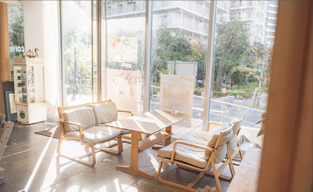 入り口入ってすぐのソファ席は、自然光がたっぷり差し込む明るい空間。ゆったりとしたスペースのため、赤ちゃん連れにもおすすめ♥