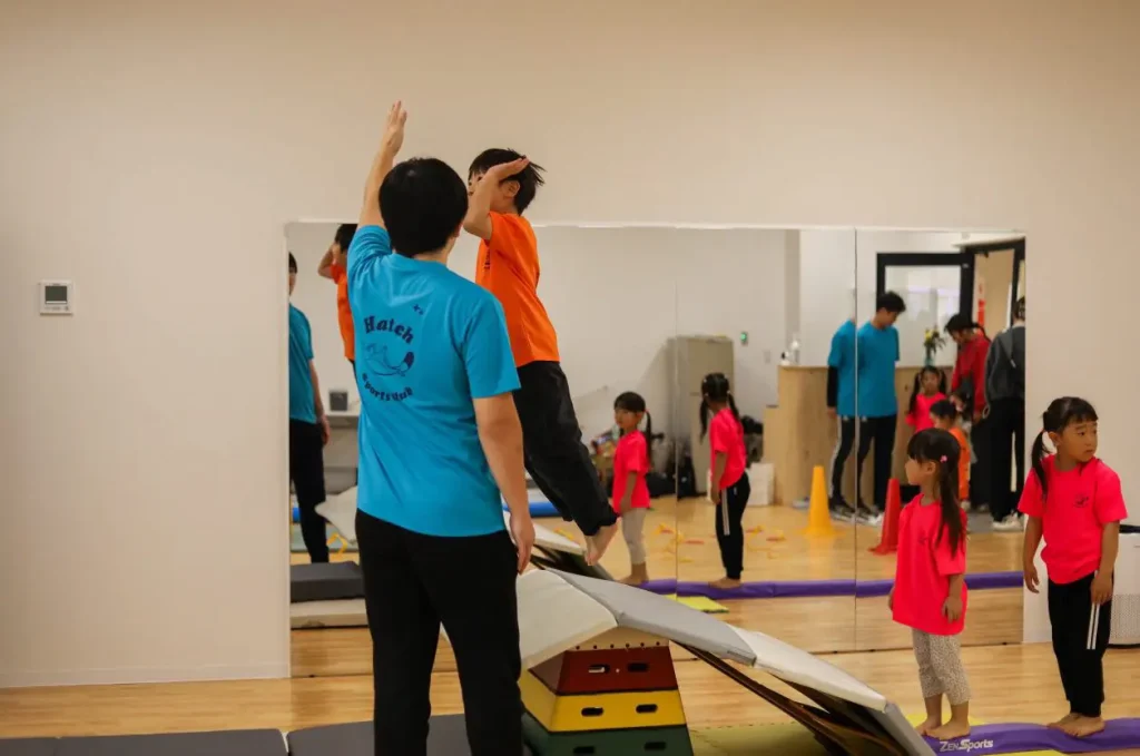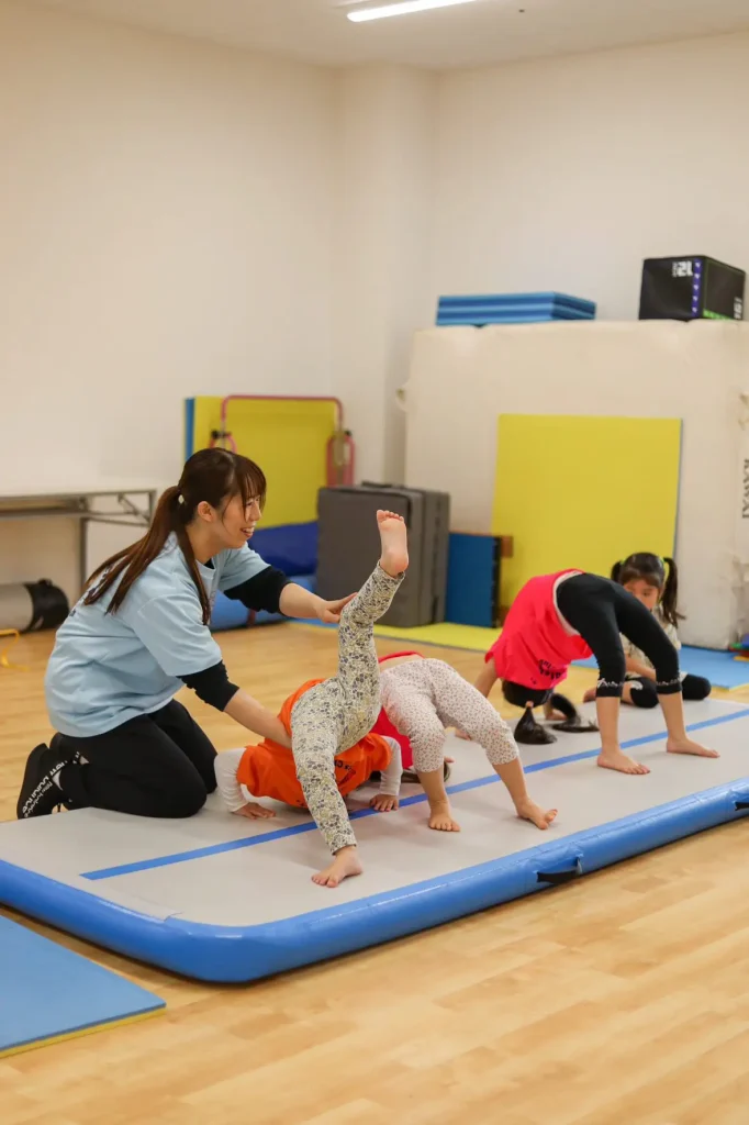 バク転など、子どもの「やってみたい」を大切にし、できる・できないより、“踏み出す経験”を重視。