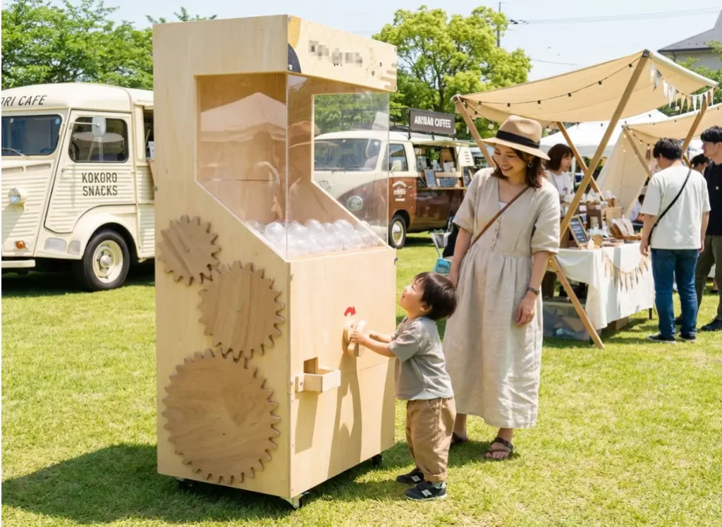 会場内には、親子で楽しめる仕掛けのひとつとして、巨大ガチャが登場。大人も子どもも思わず笑顔になる、"ちょっとした非日常"を感じられる体験をお楽しみください。参加条件あり、数量限定。