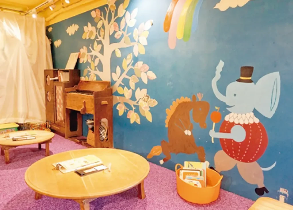 pont2 小上がりの座敷。絵本・授乳ケープ・おもちゃ・折り紙の貸し出しもあり