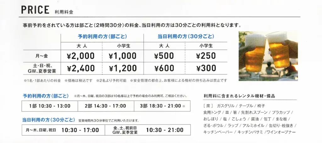予約利用は3部制となっており、各部2時間半滞在可能。準備と片付けの必要がないので、子どもと一緒にゆったりと楽しめます。予約時の事前決済で帰りもスムーズ。