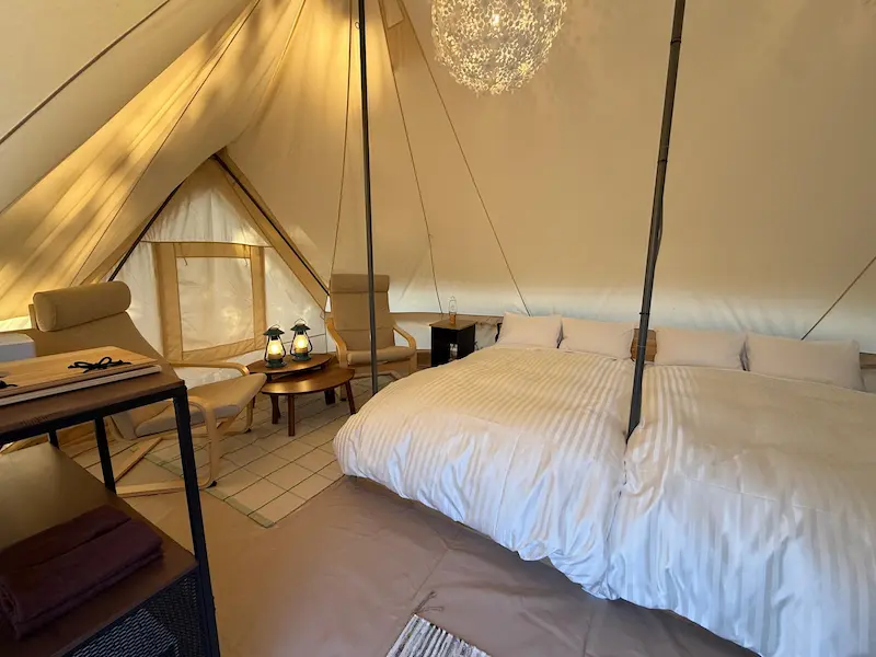 広大な敷地には、ノルディスク製「ヴァナヘイム」テントを採用。温浴施設や遊びのエリアからも近く、子連れ旅にぴったりの「ファミリースイート」や、ドイツ製プレミアムハンモック付き「ハンモックテラス」など、グランピングが27棟。 コテージは、3世代旅行にもおすすめの「クラブメゾネット・クラブテラス」や、中型犬まで宿泊OKの「ドギーコテージ」など18棟。滞在シーンに合わせてお部屋を選んで。