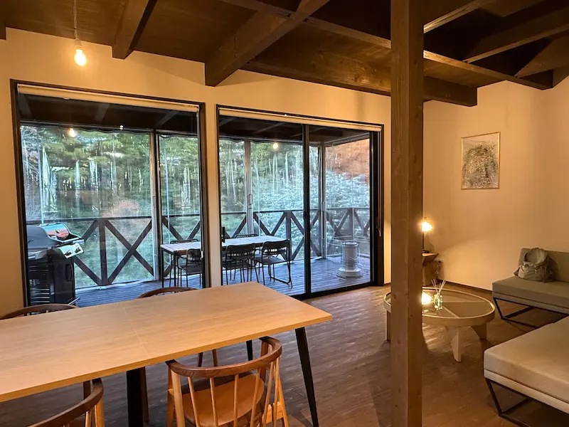 どの部屋も木々に囲まれ、四季折々の表情を楽しむことができます。特に夕日をはらんだメタセコイアの樹々は息を呑む美しさ。